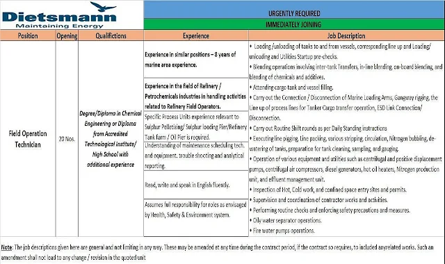 Dietsmann is hiring the following position for its teams in Kuwait:
